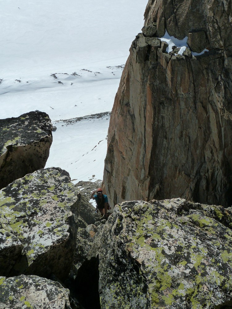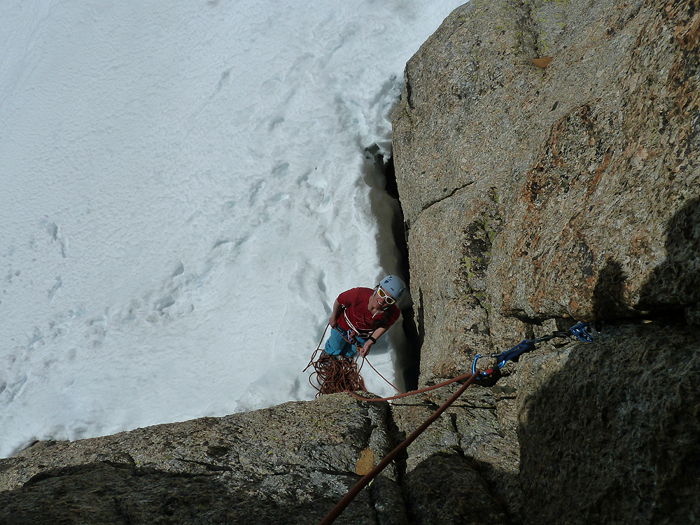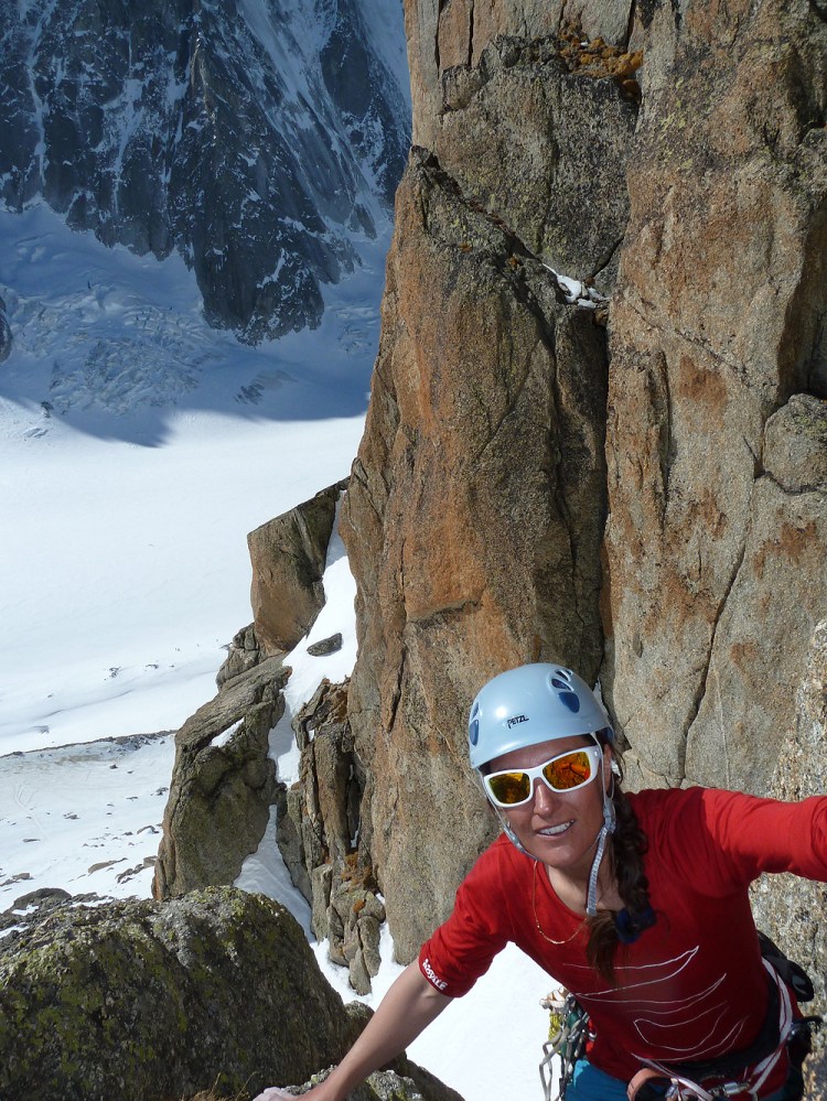 Sunkissed immaculate orange & gold granite, ski in, ski out, climb in t shirts, views to the north wall of the Argentiere basin. 6 pitches to wet the appetite. Check out Cedric’s awesome photos @ http://cedricbernardini.wordpress.com/2012/03/15/watching-birds-and-other-planes/