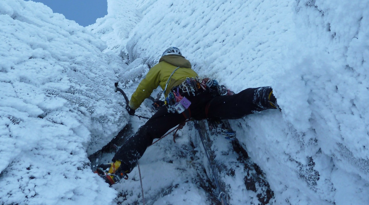 A fantastic early season day heading out to the Northern Corries in the dark, watching the rose tinted sky at dawn and being treated to stunning views to the far North and West in the crystal clear air. The crags were magically plastered and with no wind, the climbing was really enjoyable.