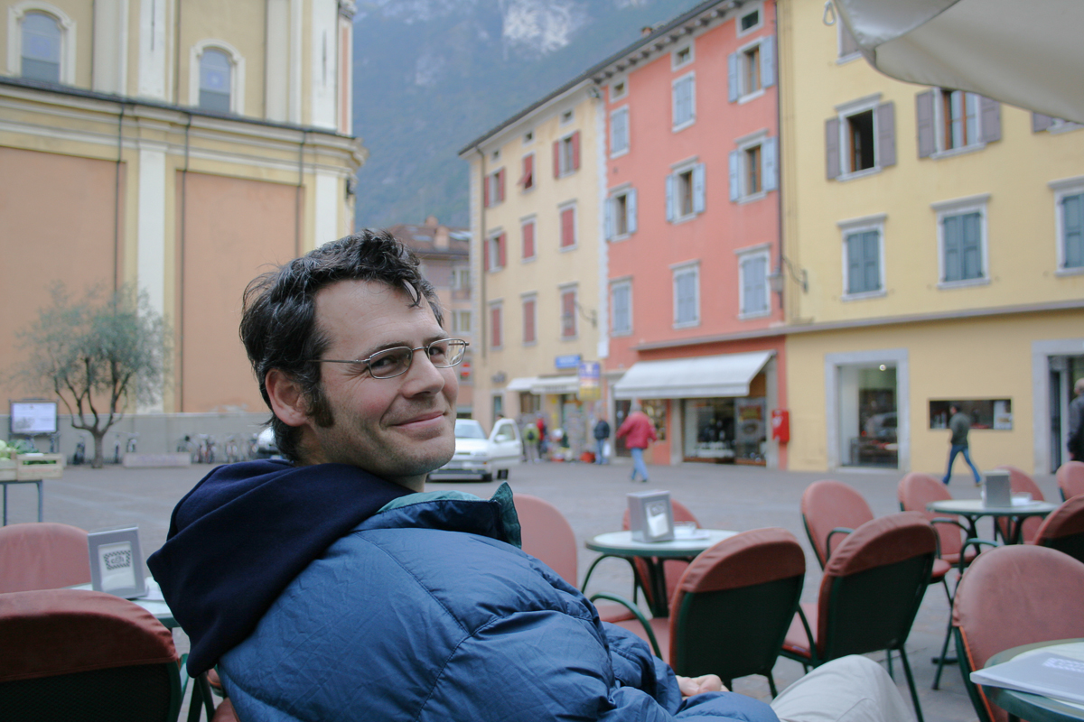 Paul excited at the prospect of the 1700 m vertical downhill. Monte Baldo, Lake Garda.