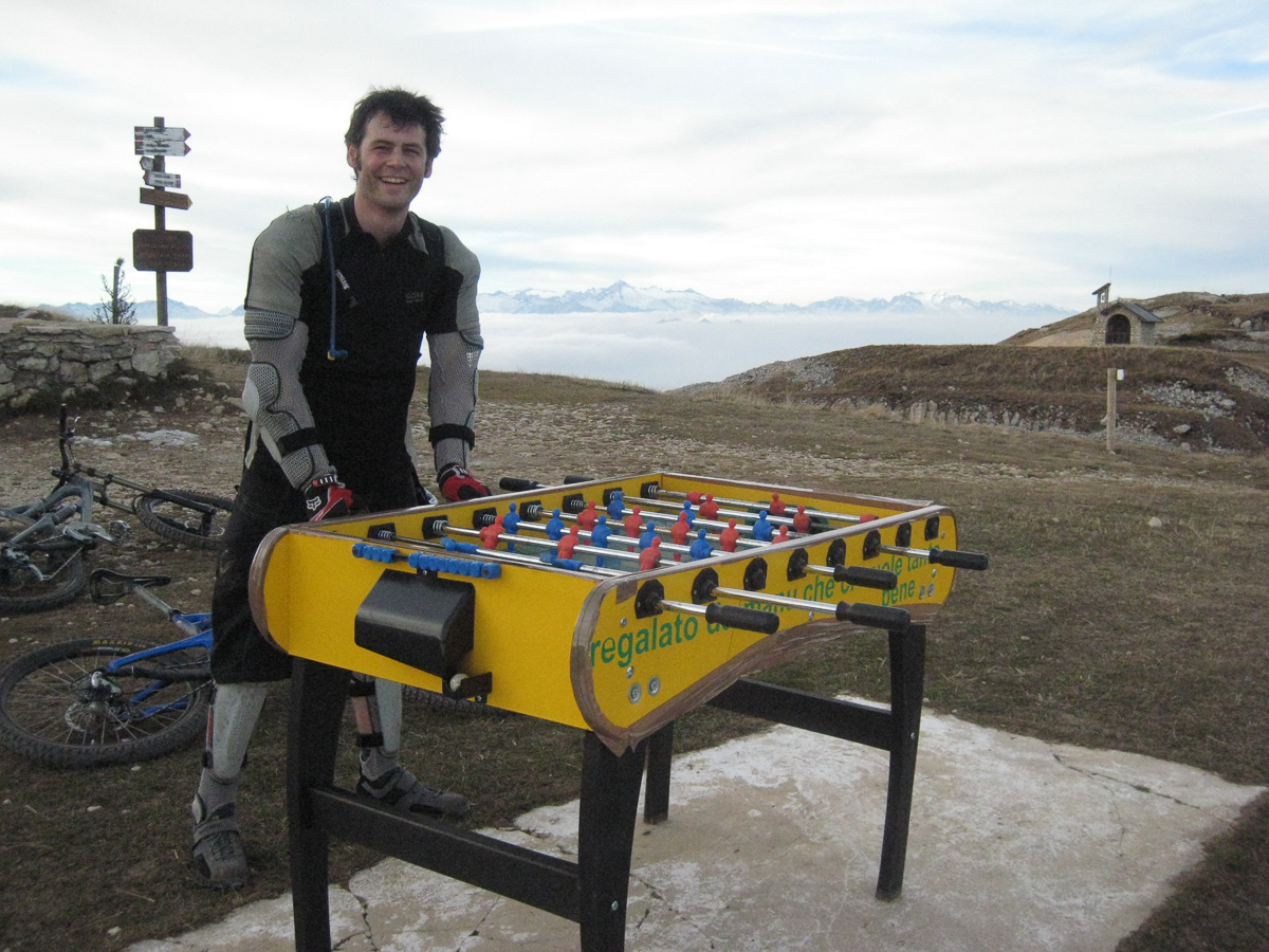 Something you don’t expect to randomly come across. The highest babyfoot table in Europe. Summit of Monte Baldo circa 2700 m.