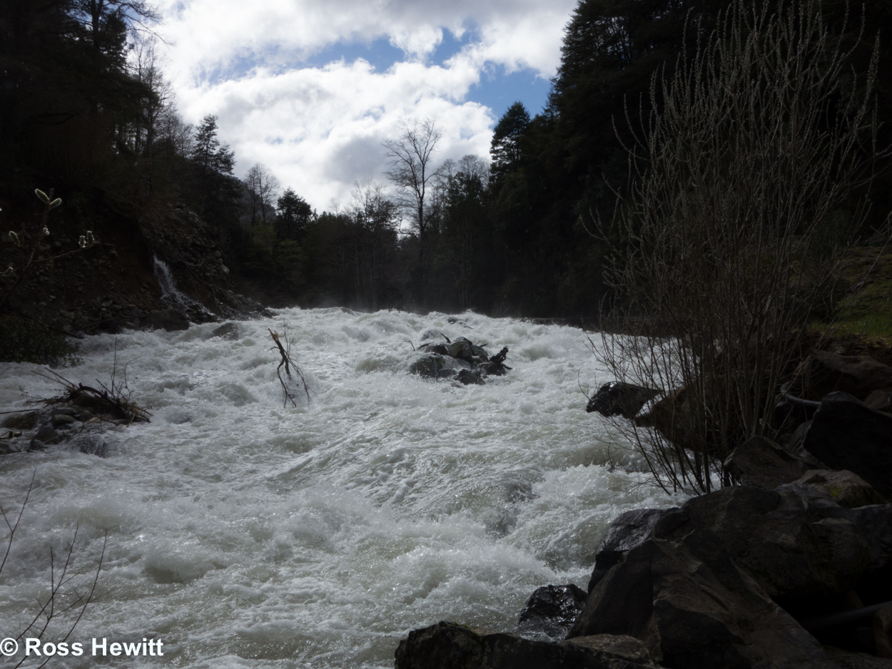 The weather has been poor the last week with several inches of rain a day so we decided to take the bus to Pucon and go ski some volcanoes in the next window. Taking the bus allowed us to absorb the spectacular scenary and rugged landscape along the way but was also trying at times while we lugged our kit around San Martin in the downpour looking for somewhere to stay the night. Arriving in Pucon Chile it was surprising how warm it was in comparison to Argentina and with no snow in site below the cloud ceiling we were questioning our wisdom.