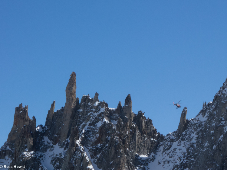 With no new snow in Chamonix for weeks, I went back with John Minogue. This route is so blind as you start to ski over the convexity and the only thing you see is the glacier 500 m below. The glacial recession has continued and there is much more exposed rock at the choke where instead of rapping across ice on skis, we rapped over rock on crampons. Its pretty steep too, the glacial death ice is always at the back of your mind, there’s a strip of ice at the base of the route which I had to downclimb, and the crevasses look hungry. Apart from all that the views are amazing and the snow was good.