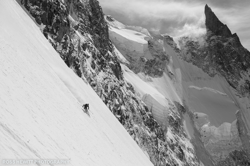 I needed someone fit to go and when I asked Tom Grant if he was up for an adventure over there his usual psyche shone through with a ‘mmmh, yeeeaaahhh, sick!’ On our first attempt it had snowed 15 cm the afternoon before and as we ran down the Midi arete we were surprised when instead of sticky steep skiing snow, cold wind affected snow cracked and ran off the old layer. That day plan B came into play and we went to the sunny east facing Breche Tacul.