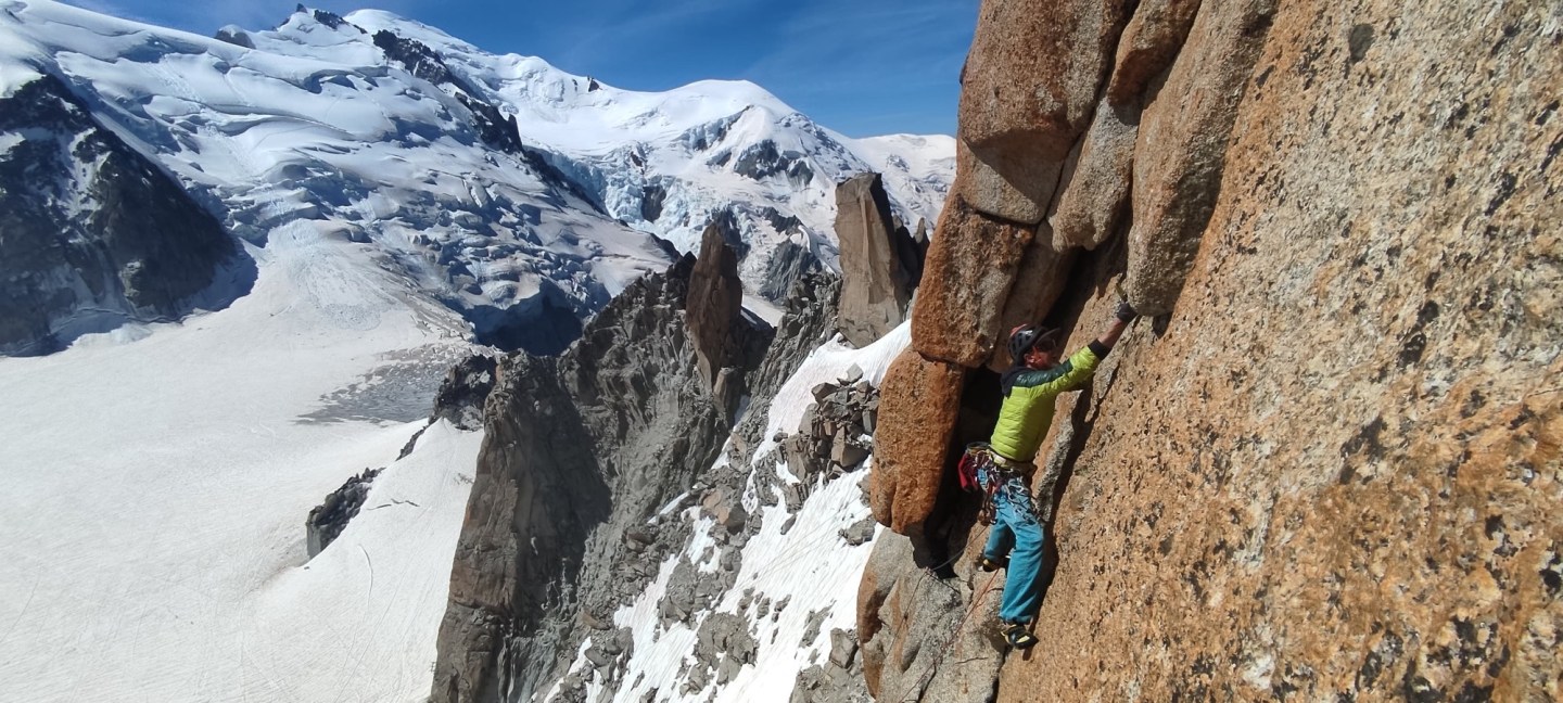 The magnificent 25 m open book grey corner is the main feature of this route and packs a mighty punch. We rapped in and set up a belay at the base. Still in the shade it was at least ten degrees colder than the day before and suffering numb fingers and toes I had to resort to a yoyo before climbing the route cleanly.