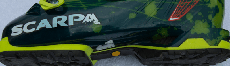 Also bear in mind that a rockered vibram sole is not compatible with traditional alpine downhill bindings and flat DIN soles should be used like those that come with the Scarpa Freedom. Some newer alpine bindings have a height adjustable anti-friction device at the toe that allows adjustment for the additional height between the rockered sole and the top of the toe piece.