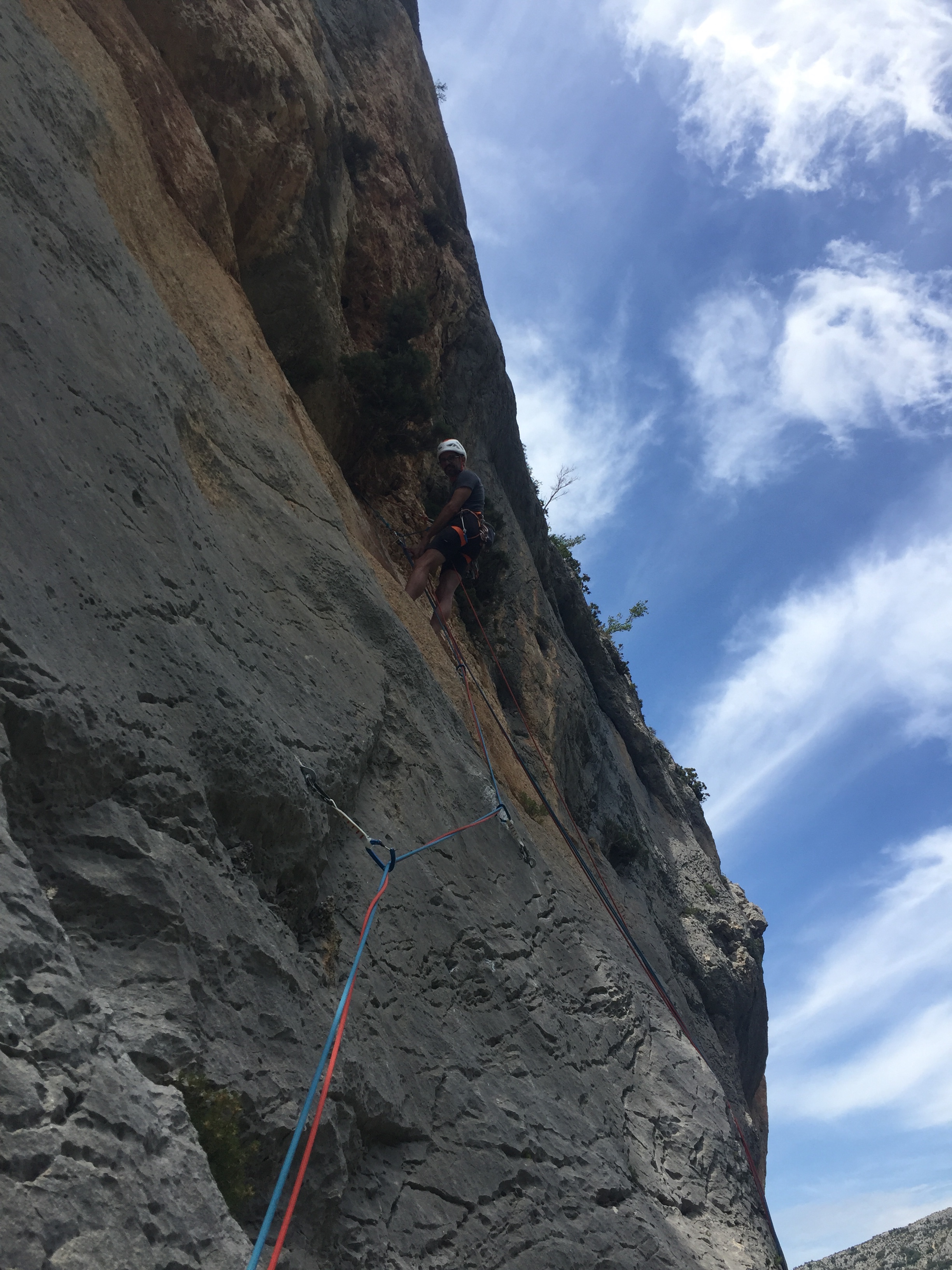 The magnificent 25 m open book grey corner is the main feature of this route and packs a mighty punch. We rapped in and set up a belay at the base. Still in the shade it was at least ten degrees colder than the day before and suffering numb fingers and toes I had to resort to a yoyo before climbing the route cleanly.