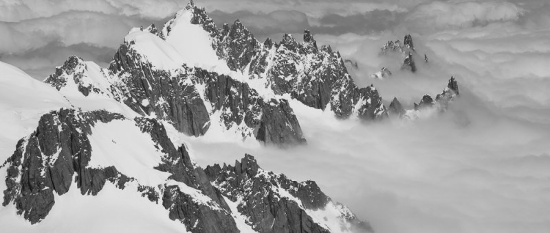 After stamping ledges in the snow, we swapped crampons for skis and took in the magnificent surroundings. The endless east face of Mont Blanc lay to our right, a crazy mix of couloirs, buttresses and tumbling seracs that held historic alpine climbs such as Route Major. Sun-warmed powder waited for us on the upper section but, as I gazed on it, I wondered how it would ski.