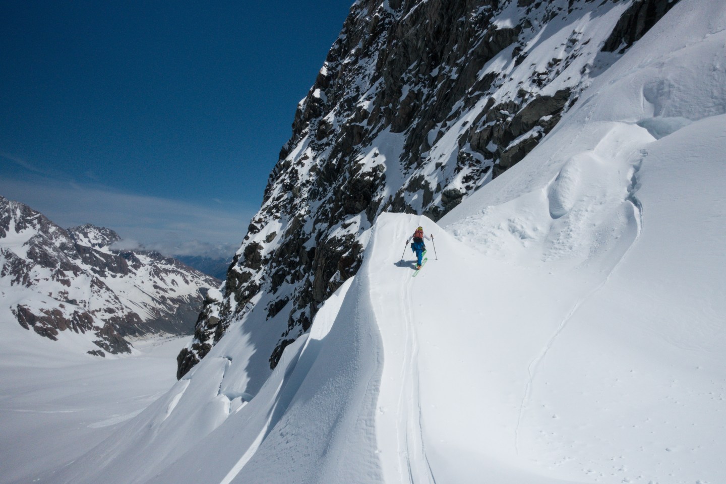 🇫🇷 Se déplacer sur un glacier peut sembler une activité assez douce pour les skieurs chevronés habitués à un terrain escarpé, mais les dangers invisibles des crevasses enneigées posent un risque réel surprenant en maints points. Il ne suffit pas que votre compagnon de cordée connaisse vaguement les glaciers, vous devez vous-même avoir une base en évolution sur glacier. En effet il va vous falloir savoir: évaluer en permanence comment et quand s’encorder, comment faire un relai solide puis quel système de moufflage choisir pour un sauvetage en crevasse (read about Petzl’s RAD system here).