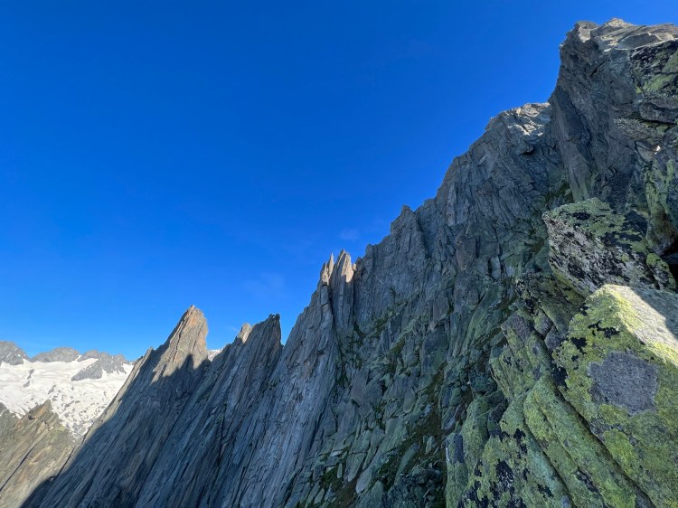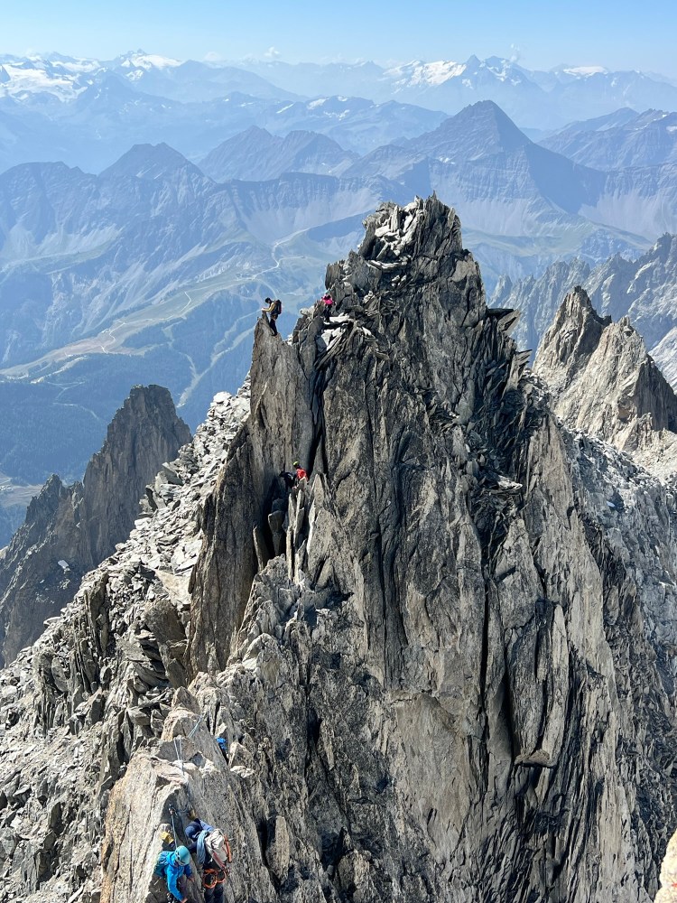 These are amongst the most popular courses we run in the summer and for good reason. Climbing over good rock on a beautiful alpine ridge, discovering the secrets of what lies around the next corner, is pure pleasure. For those with an aversion to mountain huts, there is also a fantastic amount of superb day climbs that can be done starting from the valley, using the cable cars and returning home after. Popular routes are:
