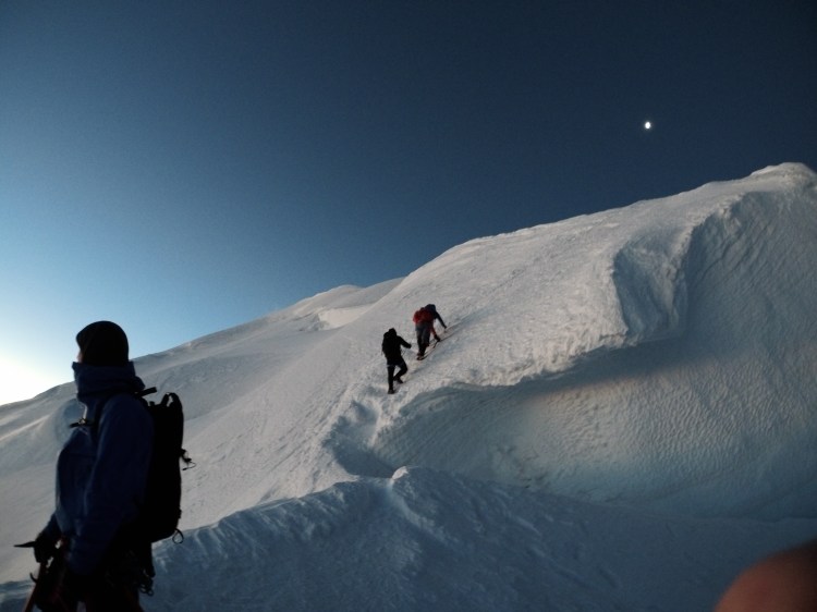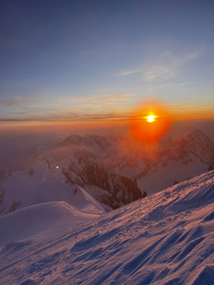 Mont Blanc is the highest mountain in Western Europe and very popular for good reason. Just shy of the 5000 m mark at 4810 m, it’s a massive mountain that offers incredible 360 degree panoramic views from the Matterhorn to the Eiger. We offer a 6 day program that allows you to acclimatise to the altitude in time so you can enjoy your time on the mountain and have the best chance of success. The first half of the week will involve climbing some of the classic alpine ridges or summits around Chamonix to hone your mountaineering skills, familiarity with the equipment, while spending 2 nights in mountain huts at around 3500 m to aid your acclimatisation,. The second half of the week is for the ascent of Mont Blanc, typically staying at the Tete Rousse or Gouter refuges on the classic route. To obtain reservations for these refuges, bookings must be made before October the previous year i.e. 9 months in advance of a trip in June – yes you read that correct, it’s simply that busy and the refuges have limited bed space.