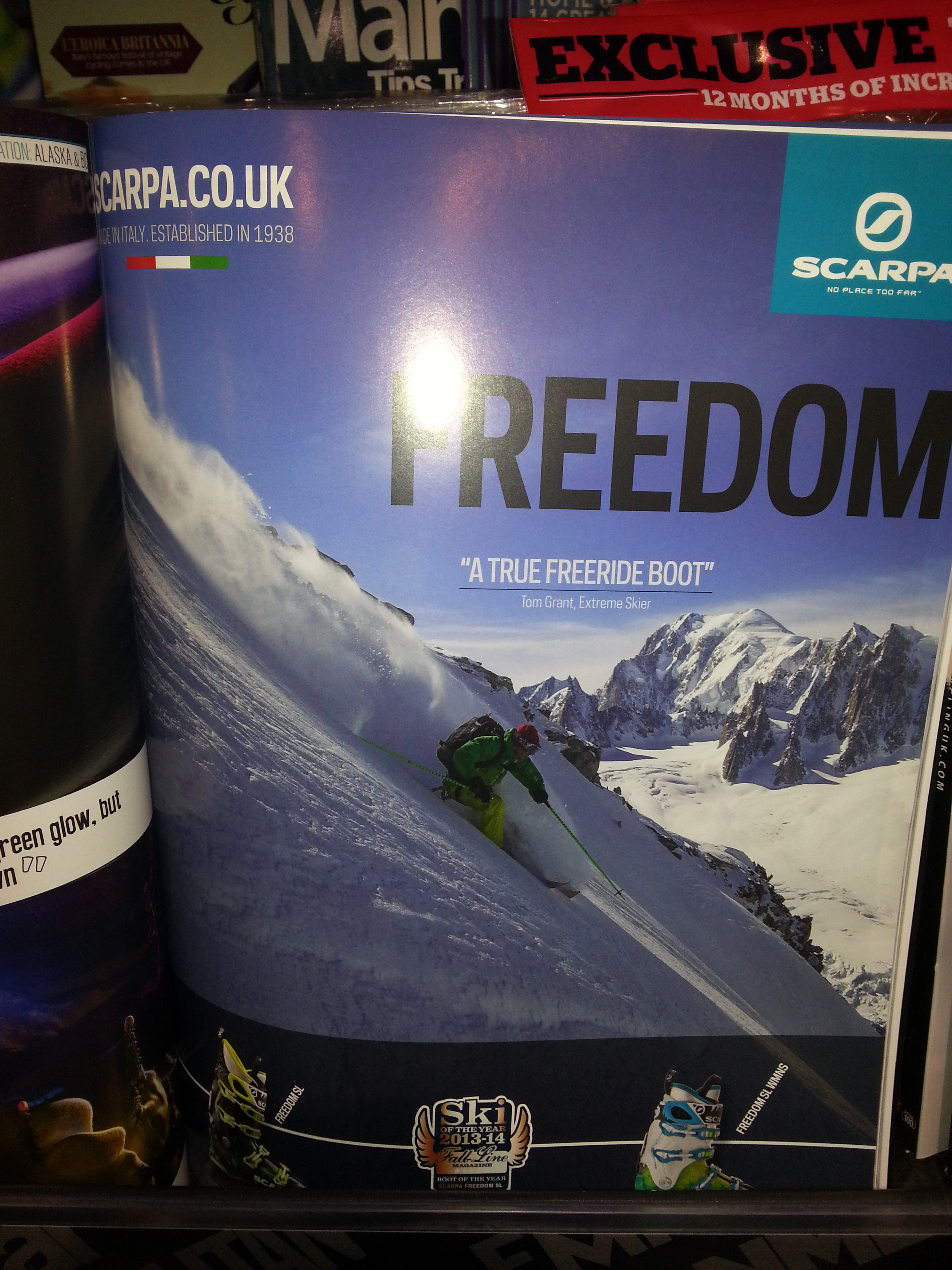 Scarpa UK DPS 2 page advert for the Freedom ski boots.