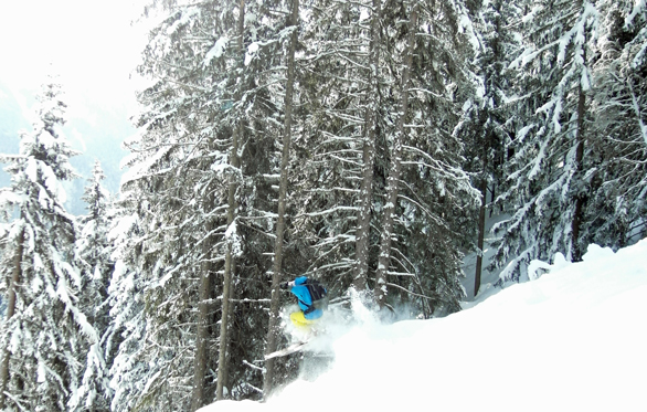 Afterwards in town we enjoyed a big beer and food in Elevation and talked alot about what happened. It became clear that Paul had been caught in the slough which had gone airborn by the time it hit Philip like an express train further below. Bearing in mind the avalanche forecast was 2/5 with chance of slabs near cols and ridges, our choice of ski area with no ground above, in the trees, and below 2000 m where the wind hadn’t effected the snow seemed to be a prudent one. Total snowfall for the previous 24 hrs was probably starting to reach the 15/20 cm. Were the 2 other skiers a factor? Could we have reduced our exposure time further? Who knows, as with all accidents there are always factors that went unconsidered, all I will say as that I chose to go back skiing the same area today knowing it was one of the safer areas rather than being up high or on big open faces that many ripped up today with the windslabs now hidden under the fresh snow.