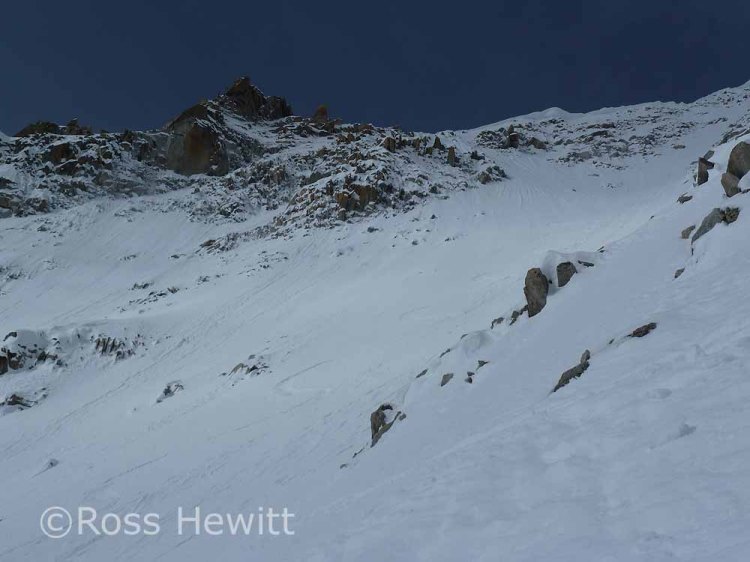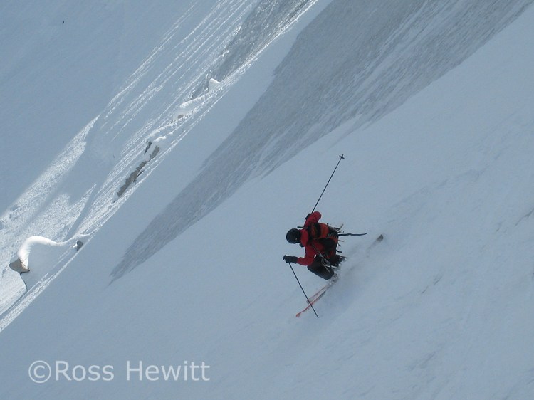 Me following the trough left by 2 160 snowboards on my 191 skis. The guy above dropped his pole which hit me in the face – thanks!