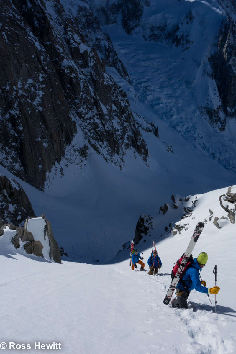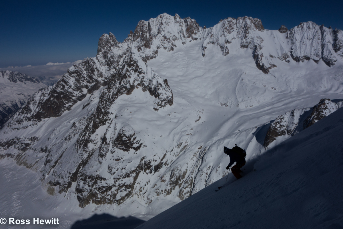 After 6 weeks in Scotland it was time for a quick trip home for the weekend to see Michelle and get a quick fix skiing. It was still low tide in the Alps with little change from when I left after Christmas but with spring like conditions we enjoyed a nice run down from the Aiguille du Tacul and another in Y couloir.