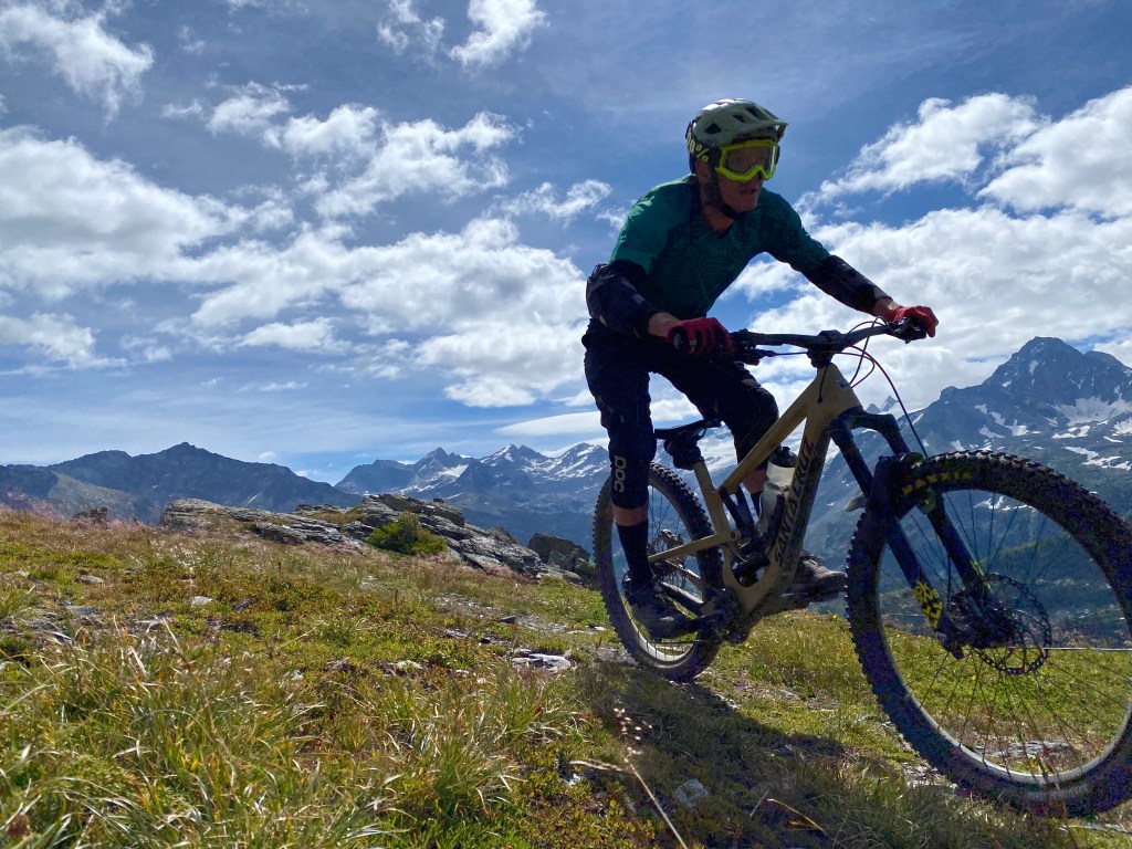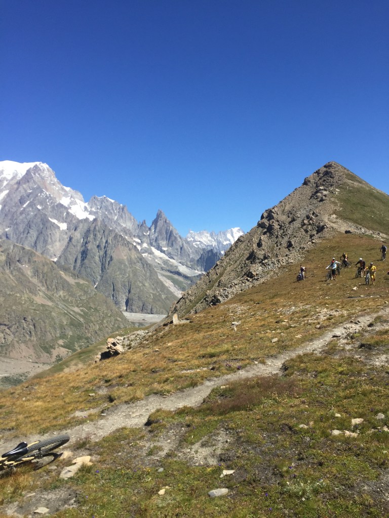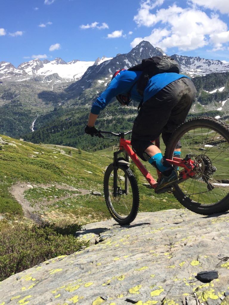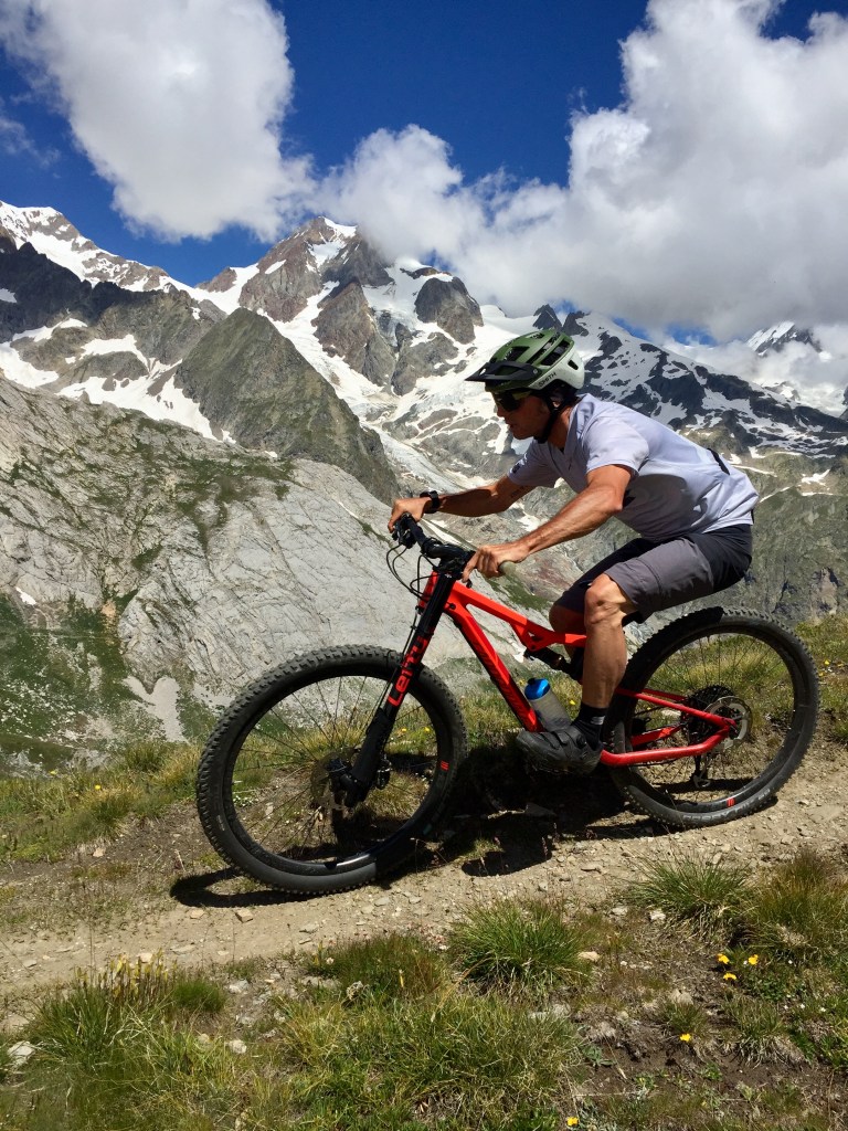 Chamonix doesn’t have much background in pedalling a bike. Sure there are some talented DH and enduro riders but not many are keen to ride through the mountains. There are a few exceptions, Oli Herren for one. In Aosta Davide Capozzi is always motivated for big missions. He’s lighter and faster than me uphill so I need to ride smart on days with him. Here we rode Col di Bard, Col Citirin, Chaligne, Becca Franca totally 3300 m of vertical, oh and it was still 40C at 1830 at 1000 m!