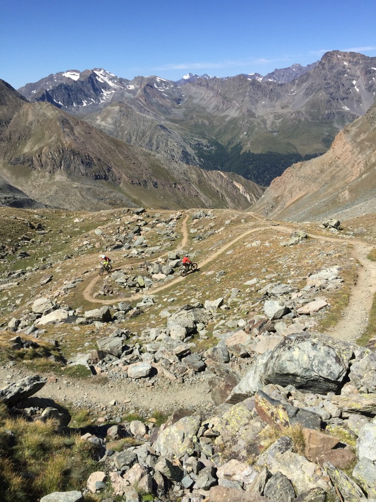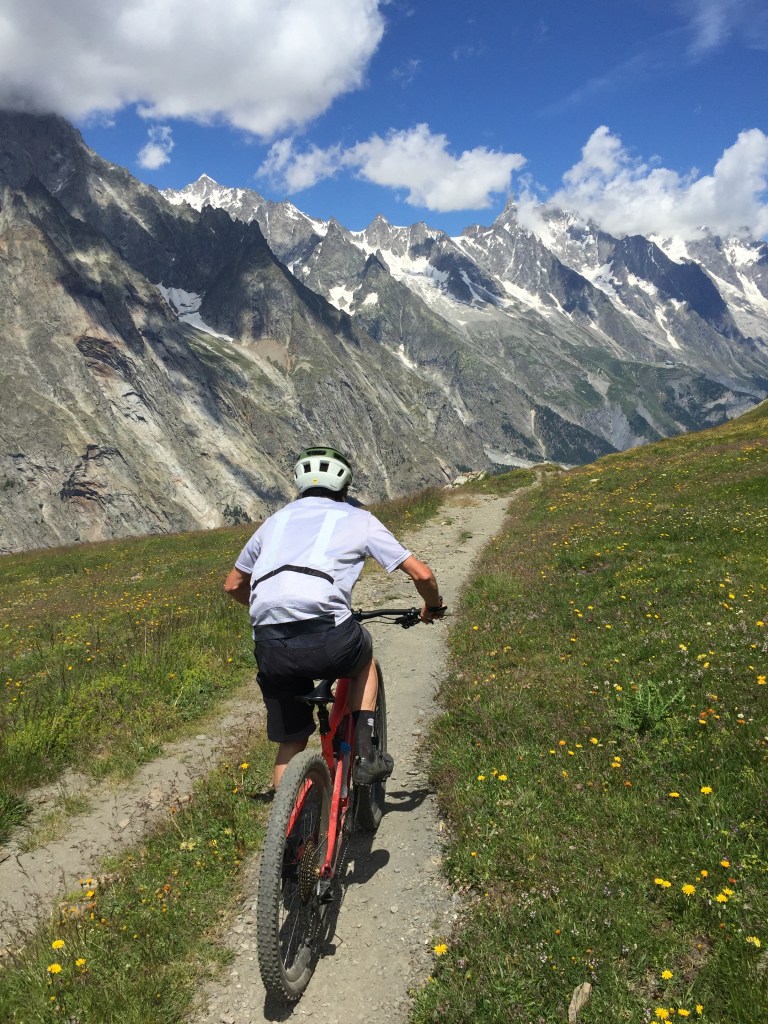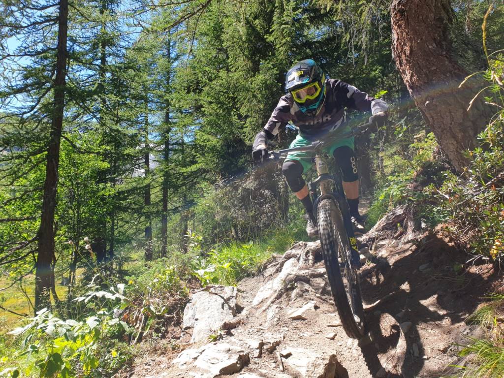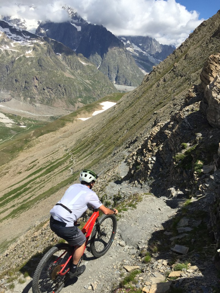 Chamonix doesn’t have much background in pedalling a bike. Sure there are some talented DH and enduro riders but not many are keen to ride through the mountains. There are a few exceptions, Oli Herren for one. In Aosta Davide Capozzi is always motivated for big missions. He’s lighter and faster than me uphill so I need to ride smart on days with him. Here we rode Col di Bard, Col Citirin, Chaligne, Becca Franca totally 3300 m of vertical, oh and it was still 40C at 1830 at 1000 m!