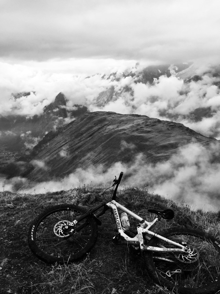 Should I stay or should I go? A murky day in Aosta had me soaked to the pants within the first half hour. Then it started to dry up so I set little goals (I’ll turn back there…) but in the end made the summit knowing the descent is a path suited to a gravel bike with no greasy rock to negotiate. In the end a super atmospheric day, the inclement weather providing dramatic scenes up Val Veni.