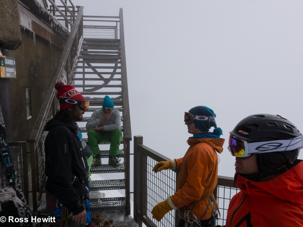 The day wasn’t without a few challenges; Bird must have dreamt he could actually fly so he left his axes at home, my crampon bail snapped at the shrund and Minna had to get there on alpine day wreckers (alpine trekkers). Somehow we made it!