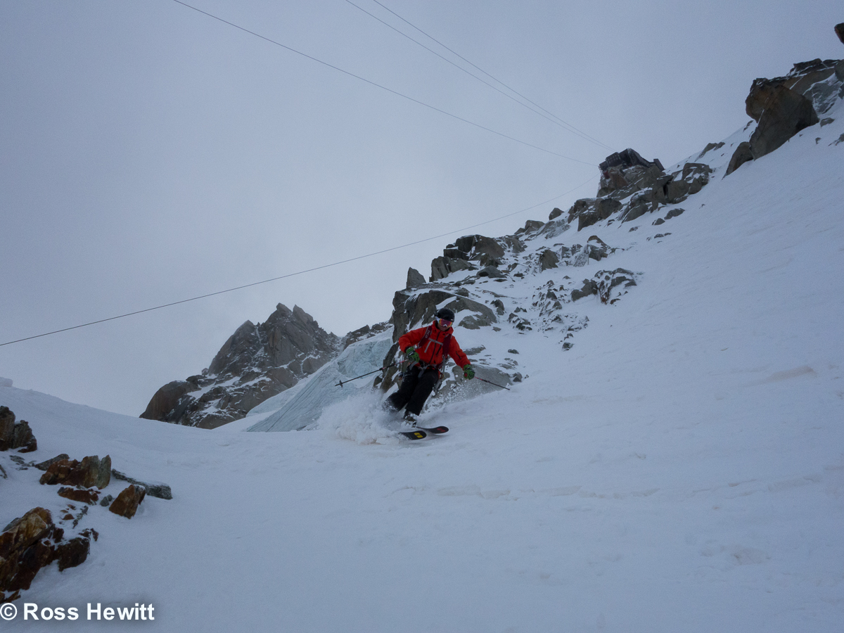 My plan to go do West Couloir Integral was scrapped as soon as the Midi announced they were opening late. Being Sunday there was gong to be a lot of attention on the North Face from those on their day off work so we changed to touring kit and headed off to Cirque Maudit for some tranquility and to see what looked good. Tour Ronde looked pretty good so we headed there.