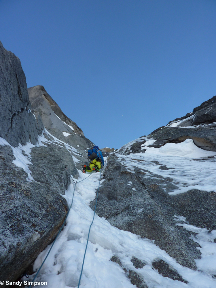 The legendary Andy Parkin- Mark Twight route from the early 90s that took them multiple attempts to finish off. With a route with such high reputation for quality, it didn’t take much to get me fired up and psyched for it, and arguably its been a 20 year wait for the stars to align for me to get the opportunity to go. A quick ask round the trusted partners and Guy Steven instantly signed up. The crux would be to kit him out as he had flown out from Scotland for the week.