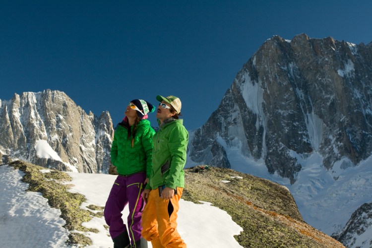 Next! Sheltering out the wind and waiting for the snow to soften on the South Face of Dent de Geant