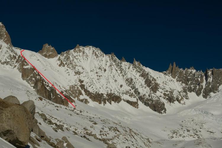 Me trying to avoid getting sluffed with the sluff train down over the shrund