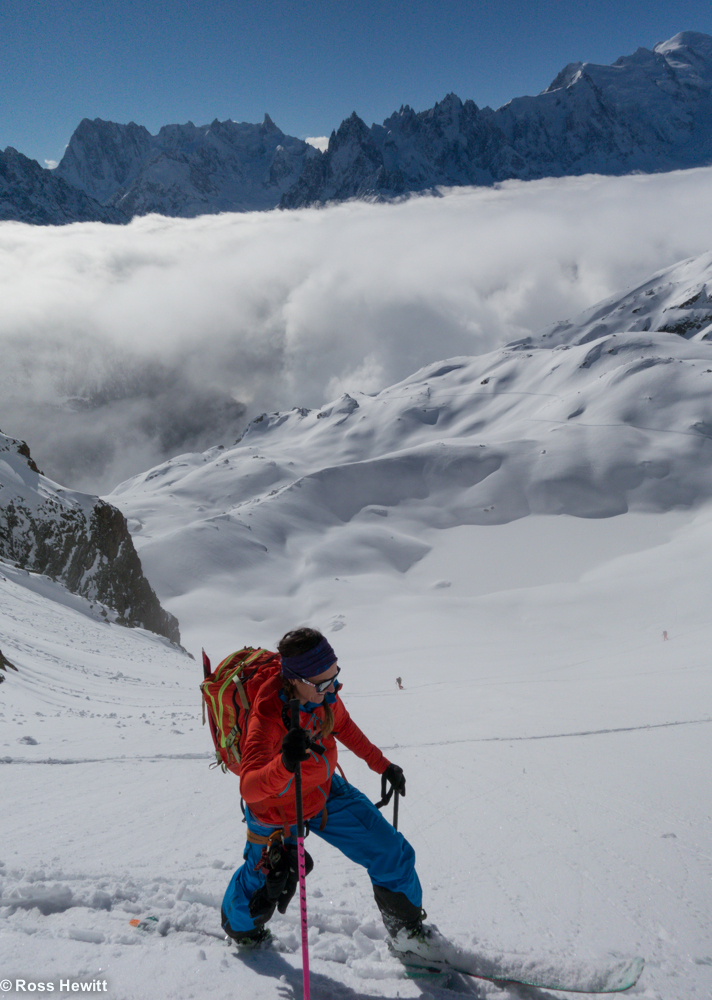 The ski down held super sluffy powder on the left bank and it was a real pleasure skiing with the snow running all around – we havent had much of that this season. Those Dolomiti lines really are ancient hallways gouged through the big walls, very Baffinesk.