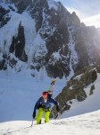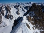 Ascending further was a grueling effort; the powder was so deep it reached up to my thighs. Forward progress required me to pack the snow in front of me with my knee before being able to step up. Finally, we reached the top of the Diamond. Just as Gee dropped his pants to take a toilet break, and without warning, a monumental rumble shattered the stillness—a massive avalanche of snow cascading down from the darkness above us. My heart raced, and I imagined Gee’s surprise as he hurriedly rectified his situation. Just as quickly, we reassured ourselves that we were safe on the shelter of the ridge, despite the tumultuous chaos above.