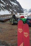 Back at the hut, we followed the time honoured post ski ritual of eating and sleeping, attempting to replenish the essentials we were lacking, in preparation for our next objective. For the next 36 hours, the wind shook the hut and howled like a banshee, frequently waking us from our slumber. We used pee buckets inside the hut to avoid the risk of opening the steel barred door and potentially not being able to close it against the sheer force of the wind. A significant amount of snow was forecast, but it was difficult to predict how much would accumulate and how much would be blown away in the storm. Our waking hours were spent cooking, eating, and joking with one another while trying to stay warm, as the cold seeped into our feet and up our legs, often convincing us to retreat into the warmth of our sleeping bags once more.