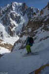 As evening fell, Beau made the heart-wrenching decision to spend the next couple of days glacier skiing, his thoughts consumed by the tragedy that had befallen his friend. Meanwhile, Christina and Gee expressed their eagerness to ski a new line on the Vancouver Peak whose approach up the Linda engulfed in darkness with overhead threat, and the small hanging face itself, didn’t call to me. Instead, I chose instead to head for Syme, where the ridges provided a comforting sense of security following the fierce storm that had recently passed. The thought of going without Beau felt gut-wrenching; he had often shared his excitement about this line but we both understood that in the unpredictable world of mountaineering where weather, snow conditions, physical and mental preparation, rarely come together, and when they do, the Universe calls to you – Go!