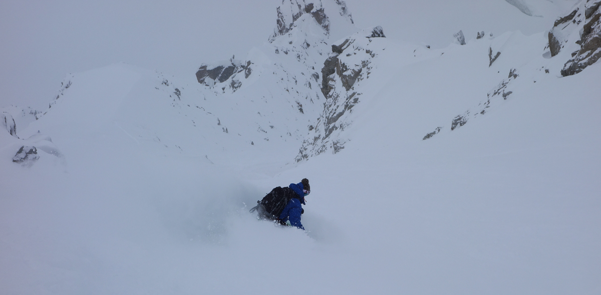 I’ve been down and out the last couple of days with a niggling cold that has made a comeback after our long day on the midi. Why won’t it just die? Over the last month the guys here have been busy filming, photographing, writing and editing while compiling a round up of January powder action in what must go down as one of the best ever. I was surprised to see a photo of myself in there under the Helbronner cable car, kinda ironic for a Scottish skier to be in Powder Magazine. I grew up skiing using ‘The Force’ in whiteouts with snow varying rapidly and randomly from ice, wind crust, sastrugi, wind buff, powder. If for some sadistic reason you want to increase your FOMO and find out what you missed out on, or are planning to come to the Alps soon check it by clicking on the link below: