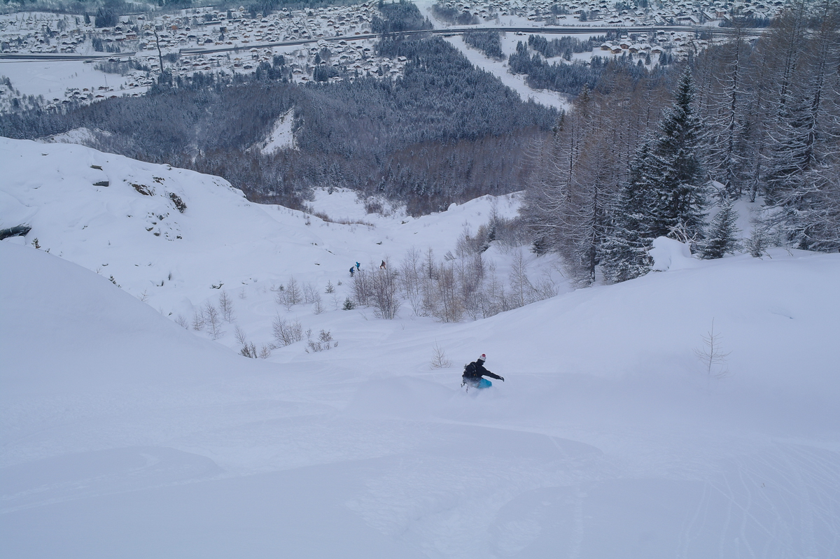 I’m on my own here this week with a freshly printed ‘pink ticket’ to party and the only thing there has been a shortage of is sleep! After a couple of days fast freeride and jumping in the trees followed by some beer for Dave’s Birthday and then the following night Philip & Nora’s send off, I was keen to get into the big mountains.
