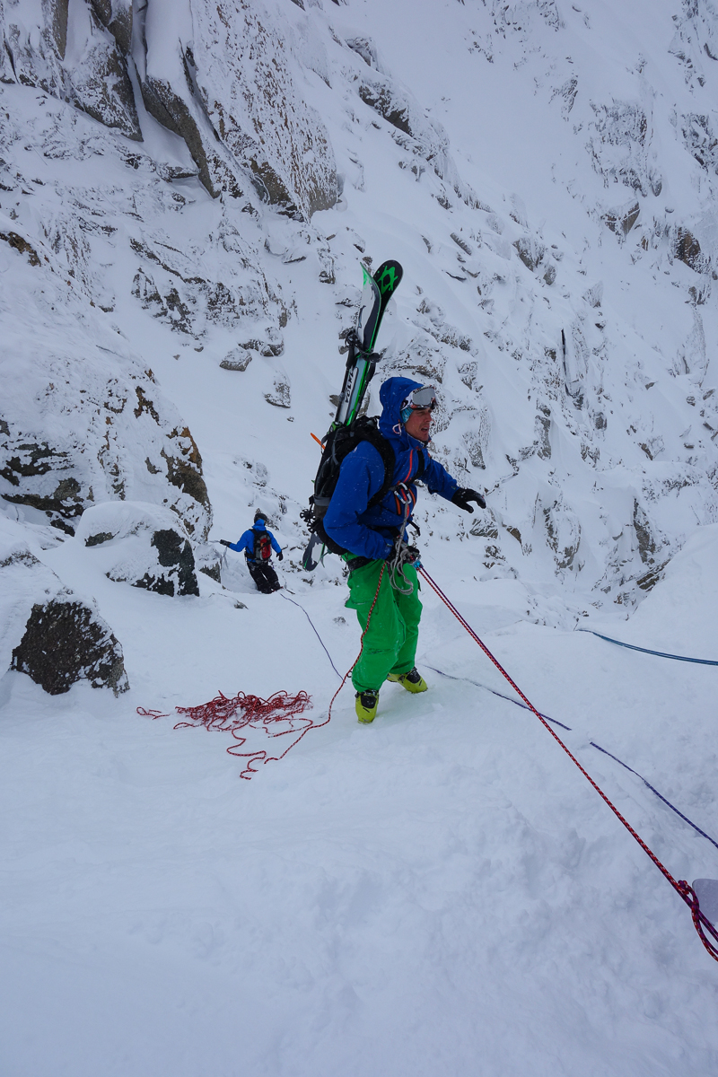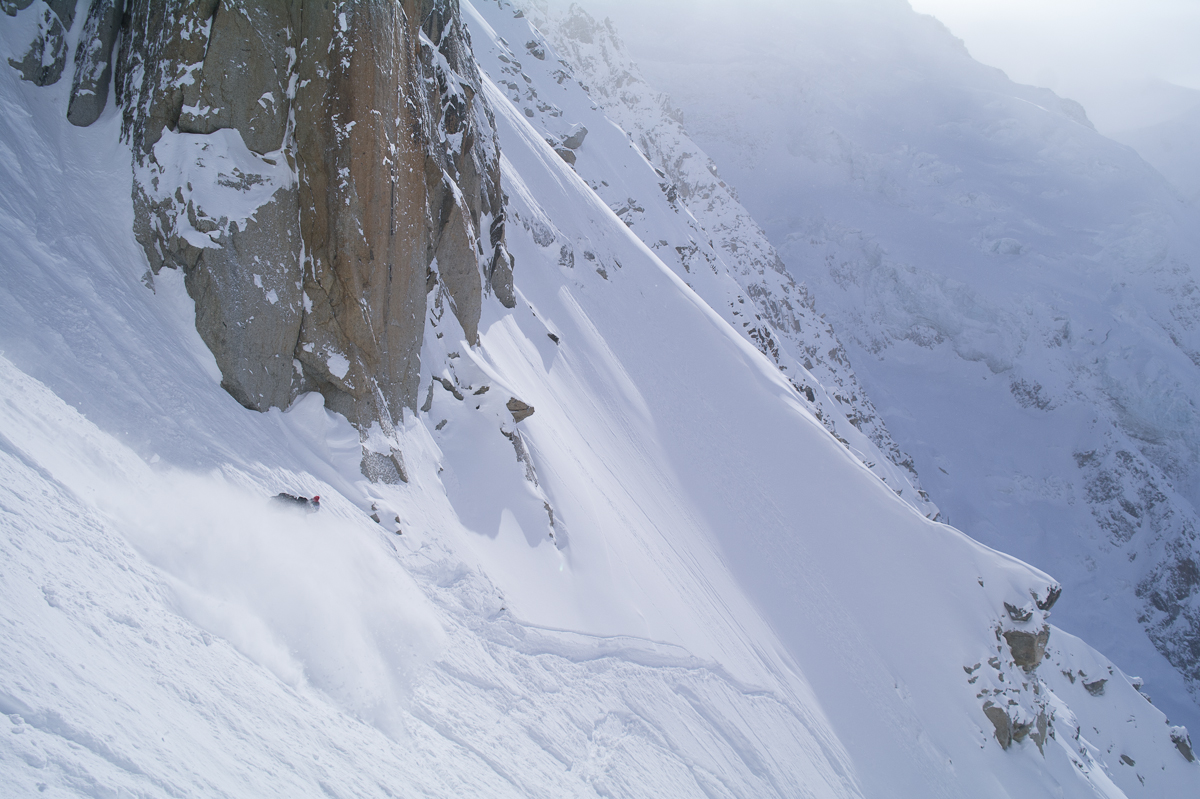 These guys made the traverse back from the West face of the Aiguille du Midi in the afternoon and dropped in like Hellfire missiles. If Carlsberg made freeride slopes it would look something like this. Possibly one of the best ‘pedal to the metal’ slopes in the World. ‘le Para’, Chamonix Mt-Blanc 700 m vert in a minute. To say I was jealous doesn’t come close, its not often I’d put money down in the Alps for a run, this one would have to wait until later after our fourth run down the West Face of the Midi.