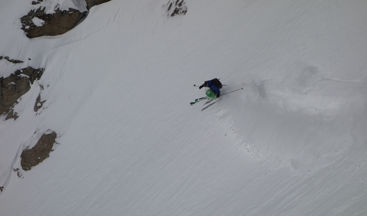On the Midi the weather hadn’t quite opened up, and the flat light wasn’t conducive to knocking out slabs on the Rond, so we started with a Cosmiques. Deep blower pow below the rock band gave us ice cream headaches and lead to a fun run down the Bossons Glacier and back to the lift.