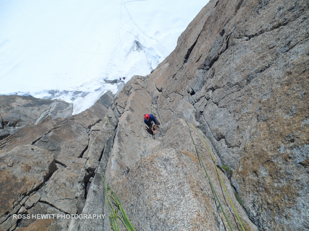 Then to the Gabarrou route on the triangle with Phil Brugger who is over from Innsbruck to train in the high mountain. Its ultra dry and the crux would be way easier in rock shoes but feels like M6+ right now. Short and sharp.