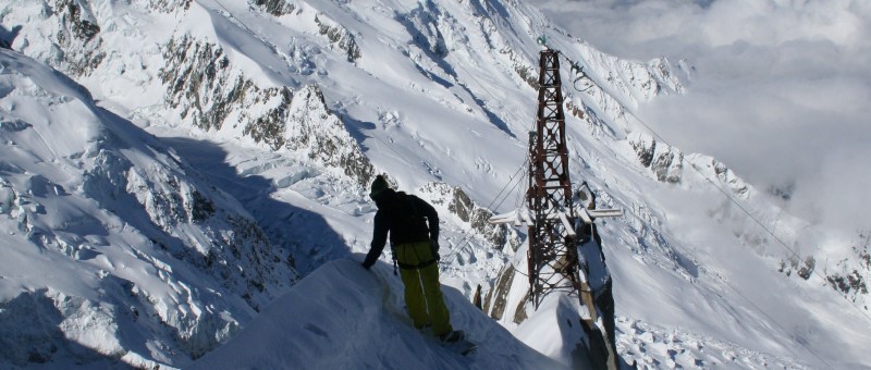 The guys had arrived 5-10 mins in front of me and I knew they would be getting cold quickly. All of a sudden I was hit with a wave of nausea, my mouth went dry and I was unable to swallow the bite of energy bar I had in it. My mind was racing, is the bug I had earlier in the week making a comeback or did we just go too fast? Dropping into such a committing line was going to have a much higher work load on my body than the easy skin to the summit and I’d recently been on Mont Blanc twice and was well acclimatised. Maybe something I ate wasn’t agreeing with me…it was an impossible question to answer but I did know opportunities like this seldom happen in a lifetime and being optimistic I figured we would lose some altitude quickly and that might make all the difference. Hey ho lets go! The clock was ticking with an afternoon storm forecast so we quickly stripped skins, put on all our clothes and skied over to Mont Blanc de Courmayeur.
