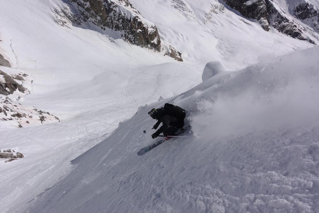More recently my focus has been closer to home on the big runs in the Argentiere basin. After a lifetime of living out of hotels and refuges as an engineer or guide, I prefer to sleep in my own bed and have a longer day from the valley floor. In the last week we did 4 day trips to the basin to ski the Cristaux, Argentiere Y couloir, South Face of the Chardonnet and Col des Courtes. These are big days in anyone’s books and I’ve called upon my summer 5000 m vert bike missions on my Nomad to power a pair of 100 mm skis and maestrale’s up and back. I’d love to get my hands on a pair of Scarpa F1 LTs for the bigger end of season missions but seems Brexit and confinements is making my chances of getting a pair from the UK non existent. Oh well, I shall keep going with what I got for now!