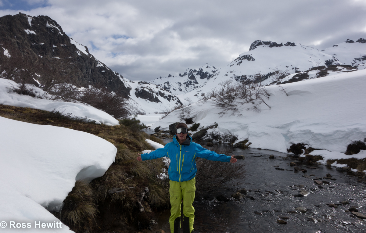 Just landed at Tasman hut and we sneaked a quick afternoon shot down the diagonal in the background. A nice wee leg loosener.